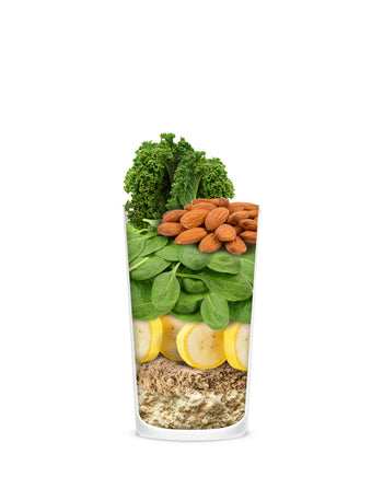 Raw Sprouted Almonds, Banana, Organic Maca, Kale, Spinach, Vitallea organic vegan protein blend (fermented pea protein isolate, organic sprouted pumpkin seed protein, organic sprouted fermented brown...